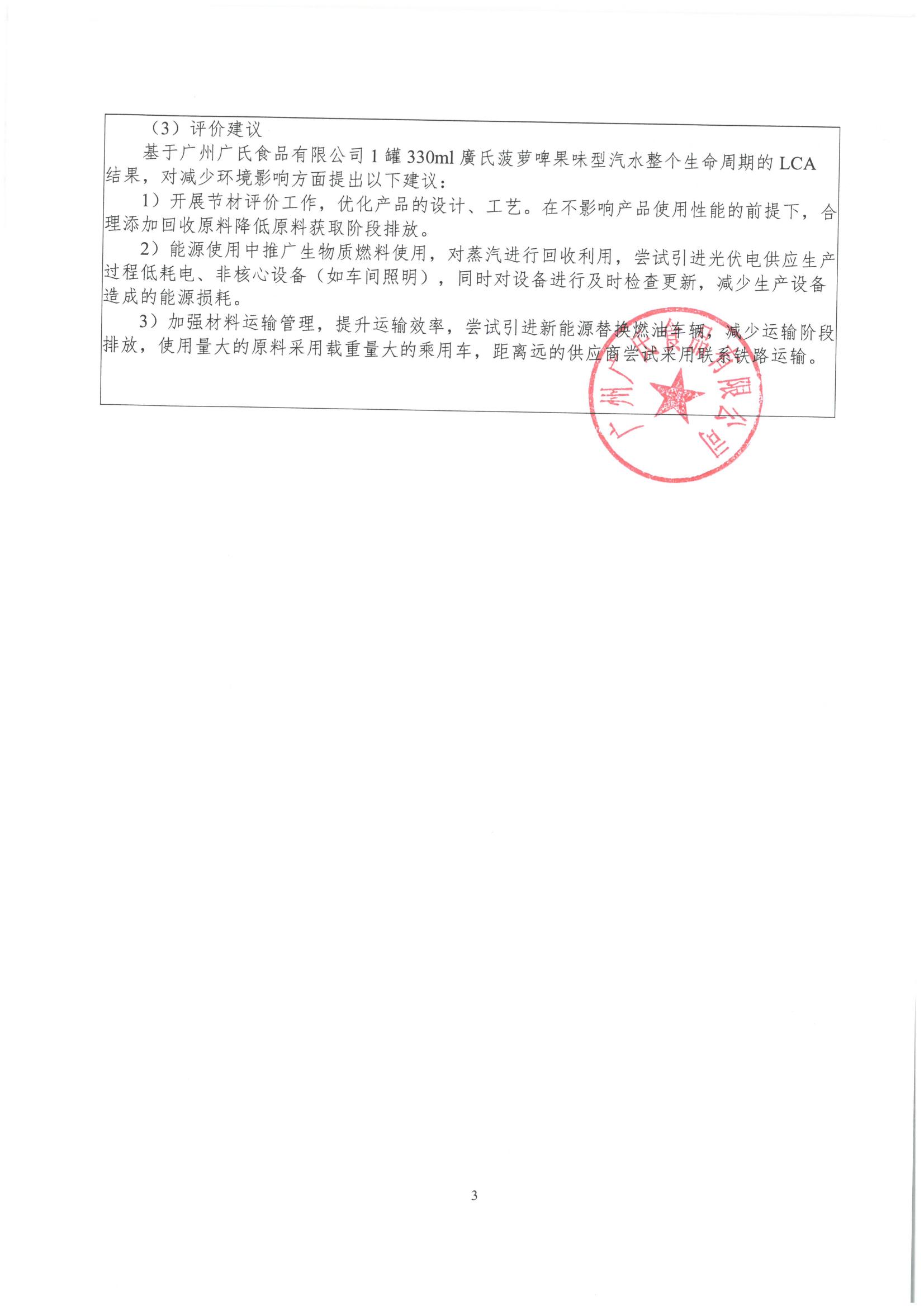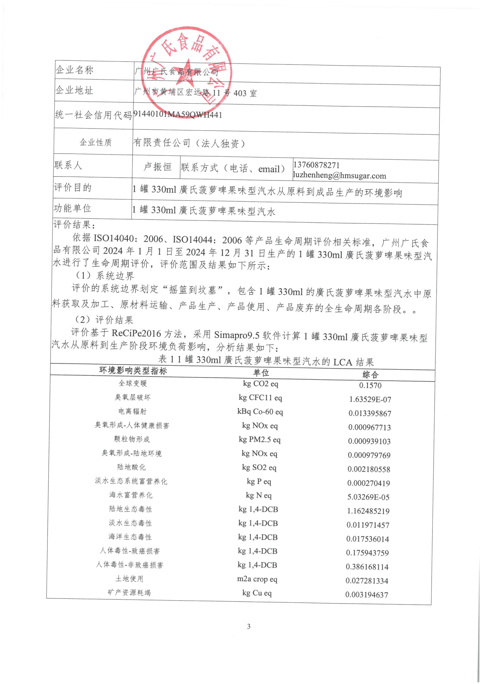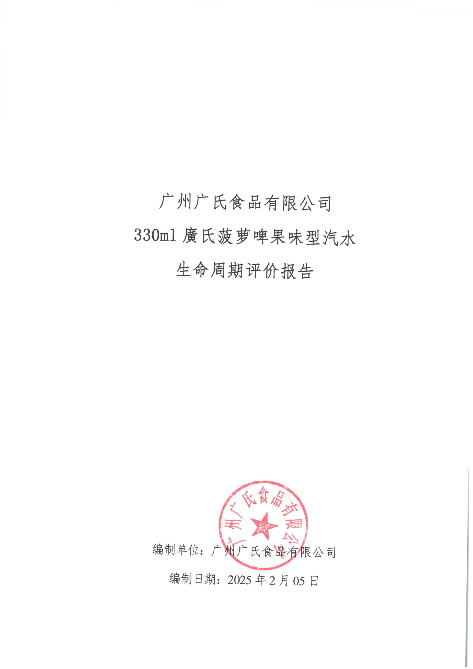 广州广氏食品有限公司-1罐330ml廣氏菠萝啤果味型汽水-LCA报告(企业自评)