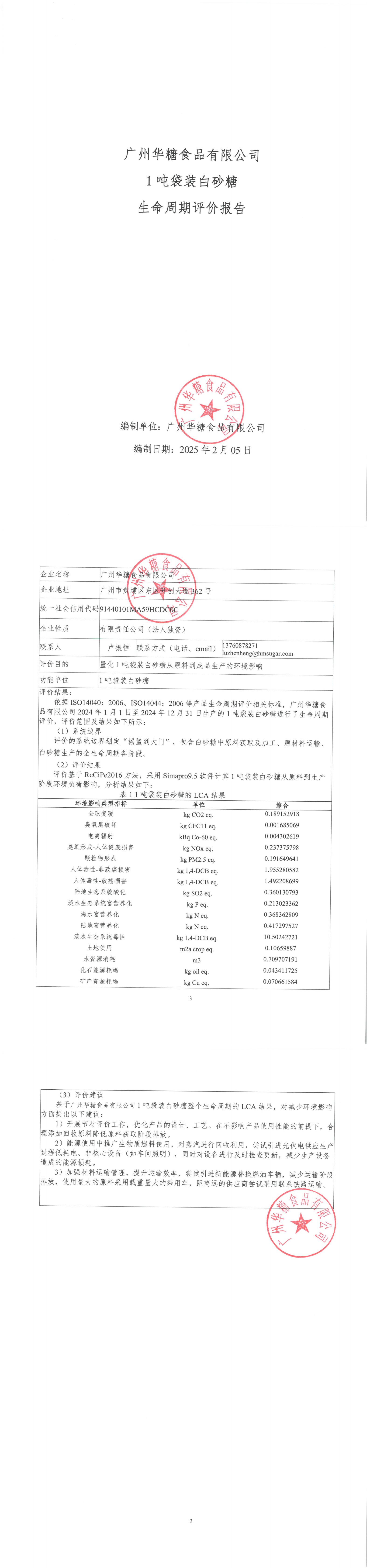 广州华糖食品有限公司-1吨袋装白砂糖-LCA报告(自评价)