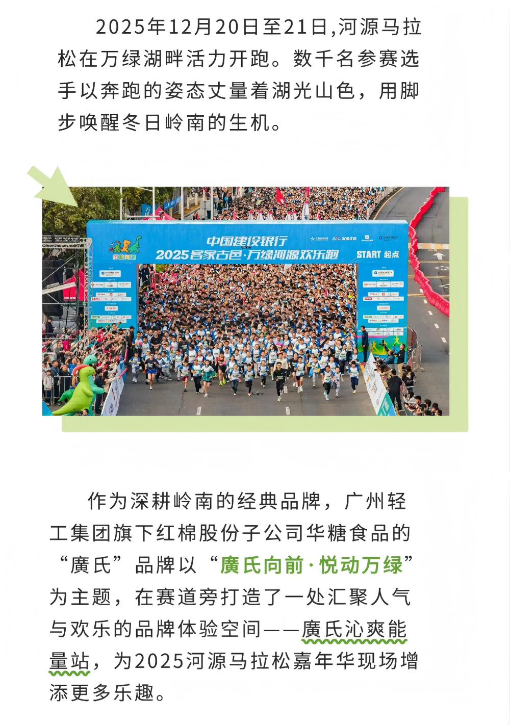 廣氏向前,悦动万绿丨廣氏亮相河源马拉松,助力全民健身浪潮