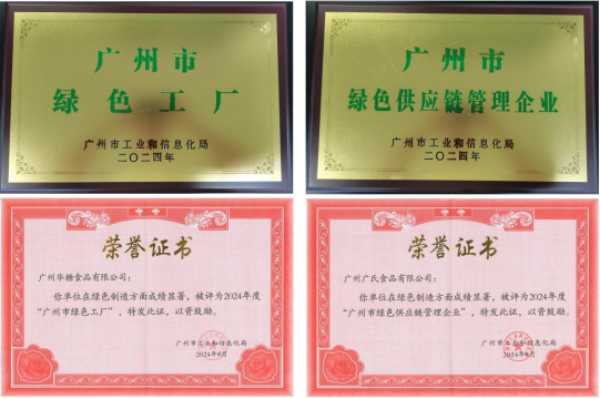 8月29日,广州市工业和信息化局举办了“广州市绿色制造推进会暨2024年度绿色制造名单颁牌仪式”。在这场汇聚行业精英的盛会上,经过一系列严谨而细致的评审流程,“华糖食品”与“广氏食品”凭借其在可持续发展领域的优异表现,脱颖而出,分别荣获“广州市绿色工厂”及“广州市绿色供应链管理企业”的荣誉称号。
