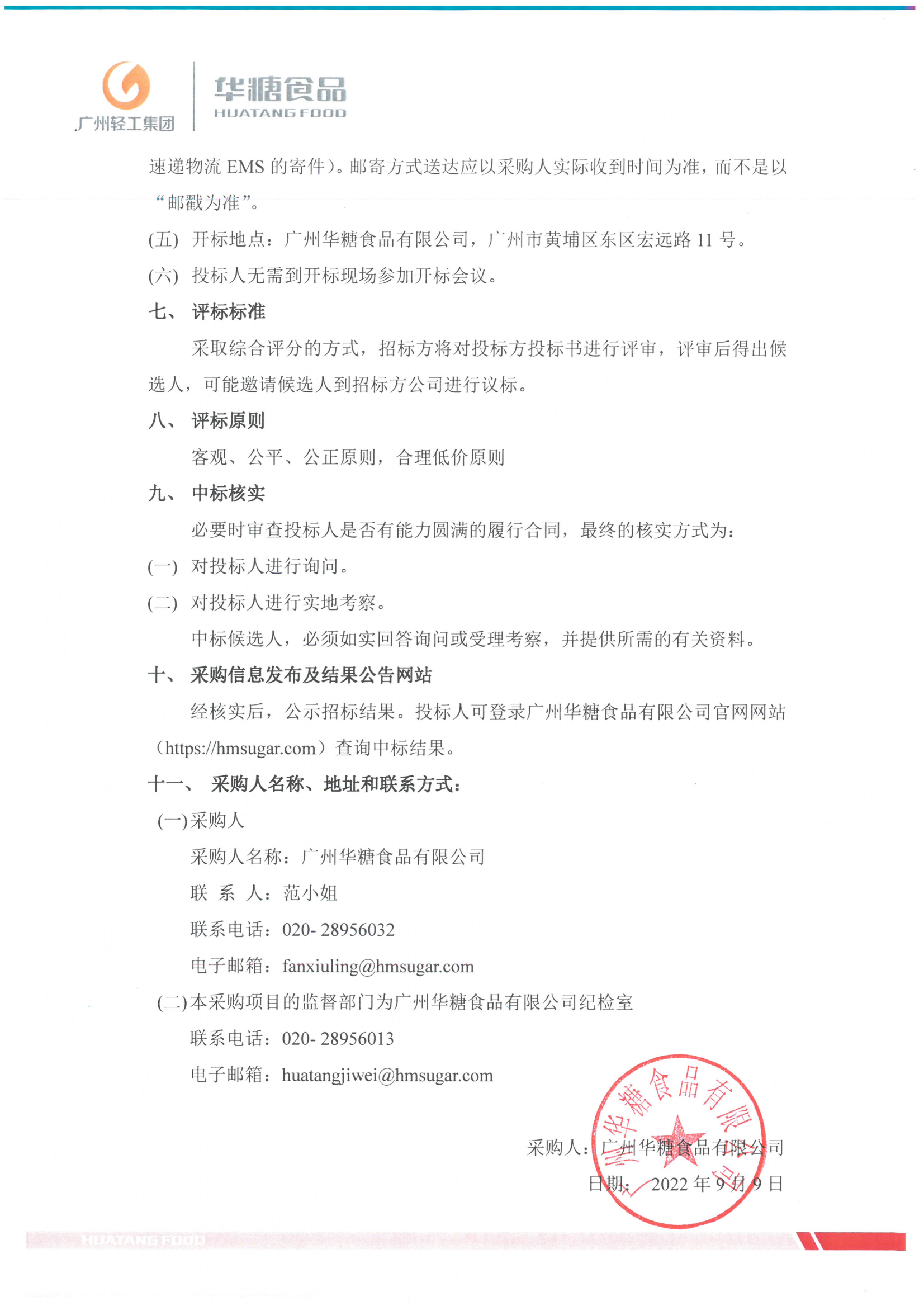 广州华糖食品有限公司2022-2023年度货物运输(W1段、W2段)中标结果公告