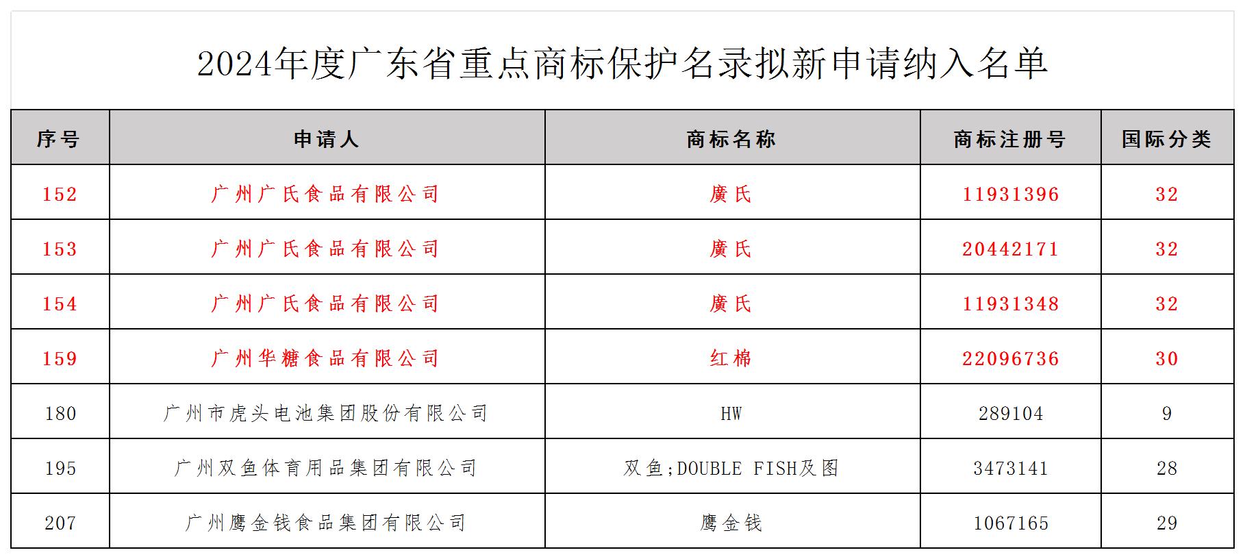 4月16日,广东商标协会重点商标保护委员会发布的《广东省重点商标保护名录》公示名单,其中广州华糖食品有限公司的“红棉”、“廣氏”品牌共4个商标再度成功入选。